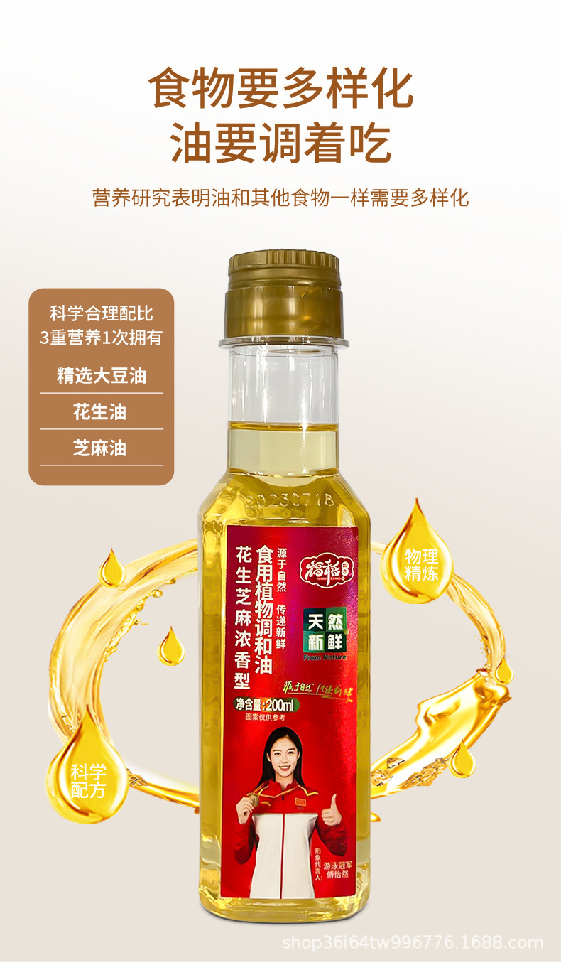 福稻四方花生芝麻香型食用植物调和油 200ML官方直售家用烹饪炒菜